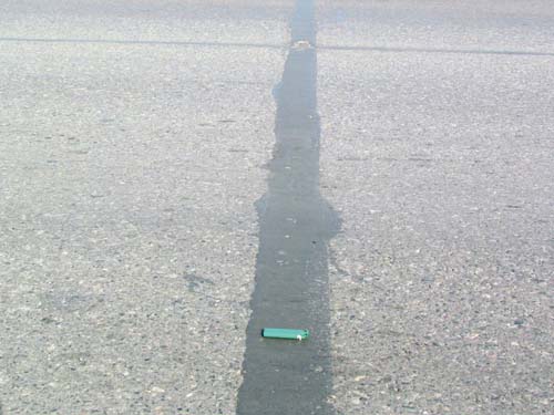 粘貼:撕掉貼縫膠粘貼面的塑料薄膜,用手或腳帶動(dòng)帶動(dòng)粘貼膠,一般前進(jìn)一邊摁壓,裂縫居中,確保與路面緊密粘貼。貼縫膠的寬度一般為3cm、4cm和6cm,對(duì)于縫寬大于1cm的裂縫或與刀片局部坑槽,應(yīng)對(duì)裂縫進(jìn)行填充后采用寬度大的貼縫膠進(jìn)行貼縫,同時(shí)也可通過并行搭接貼縫;